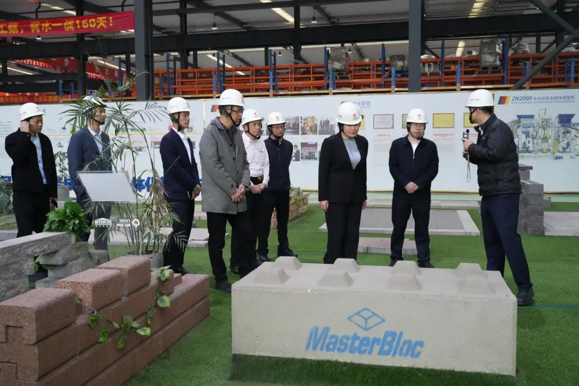 Vo výstavnej časti tehál si Liu Min a jeho delegácia prezreli rôzne priepustné tehly, ekologické tehly na ochranu svahov, dlažobné tehly a špeciálne produkty s vysokou pridanou hodnotou, čím podrobne porozumeli ich aplikáciám pri stavbe miest s hubami, komunálnom inžinierstve a komplexnom využití tuhého odpadu. Generálny riaditeľ Fu Xinyuan vysvetlil, že spoločnosť neustále optimalizuje technológiu lisovania a riadenie procesov, neustále zlepšuje pevnosť produktov, kvalitu vzhľadu a efektivitu výroby, aktívne reaguje na požiadavky zeleného a nízkouhlíkového vývoja a podporuje modernizáciu stavebných materiálov smerom k vysokej kvalite a ochrane životného prostredia.