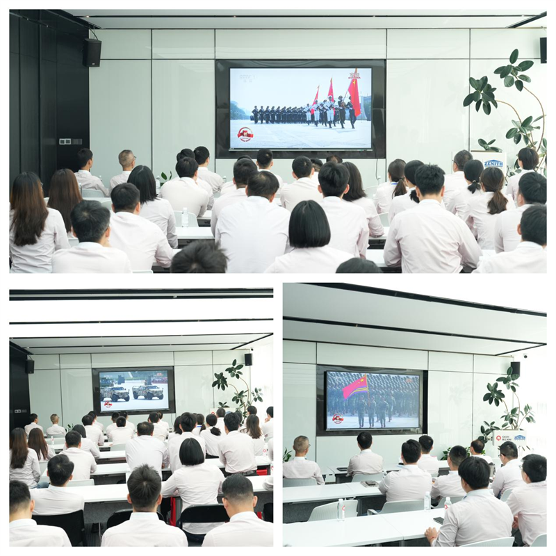 3. septembra o 9:00 sa v Pekingu konala veľká vojenská prehliadka pri príležitosti 80. výročia víťazstva Čínskej ľudovej vojny odporu proti japonskej agresii a svetovej protifašistickej vojny. Pobočka strany Quangong Co., Ltd. aktívne zareagovala na národnú výzvu a zorganizovala všetkých zamestnancov, aby simultánne sledovali živé vysielanie, boli spoločne svedkami tohto historického momentu, cítili správanie silnej armády vlasti a podporovali veľkého ducha vojny odporu proti japonskej agresii.