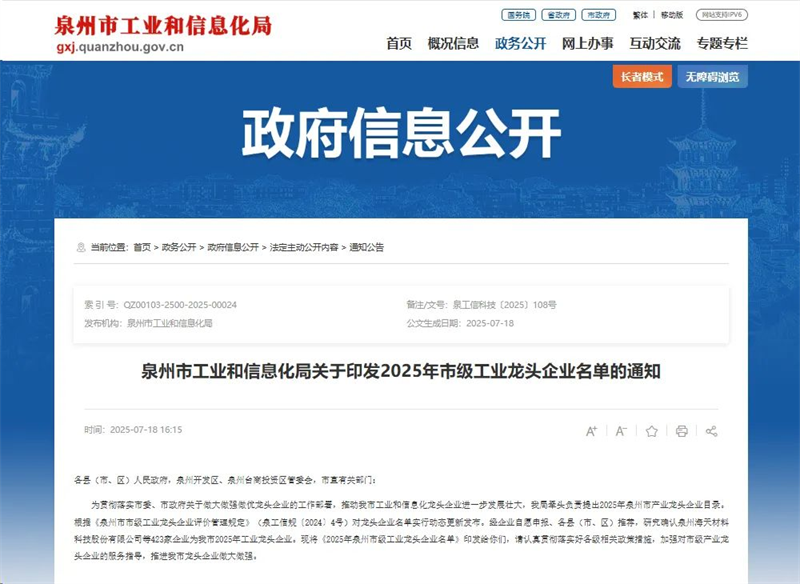 Tento výberový proces sa uskutočnil v prísnom súlade s „Nariadeniami o hodnotení a riadení vedúcich priemyselných podnikov v meste Quanzhou“ (Quan Gong Xin Gui [2024] č. 4). Proces výberu zahŕňal dobrovoľnú žiadosť podnikov, odporúčania krajov (mestá a okresov), odborné posúdenie a zverejnenie. Bol implementovaný dynamický riadiaci mechanizmus so vstupom aj výstupom, ktorý plne demonštruje autoritu, aktuálnosť a hodnotu zoznamu.