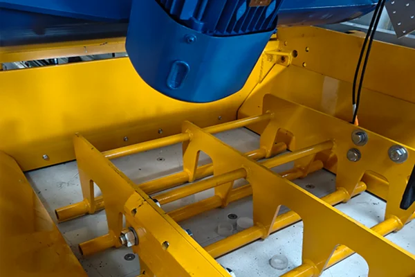 1Dizajn vibračného stola So 4 servomotormi pre silnejšie vibrácie a plynulejšie. Zariadenie na redukciu vibrácií so vzduchovým vakom V každom rohu vibračného stola sú umiestnené 4 vzduchové vaky, aby sa znížila amplitúda vibrácií počas vibrácií, aby sa znížil mechanický vplyv vibračného stola na palety, čím sa znížilo poškodenie paliet počas výroby, aby sa zlepšila životnosť paliet.