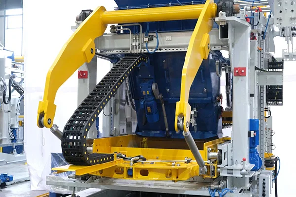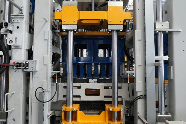 7Stlačte Zaisťovacie zariadenie hlavy Tento mechanický uzamykací mechanizmus pozostáva z vysoko pevných blokovacích blokov, klinovej lisovacej hlavy a dvojčinných hydraulických valcov. Počas demontáže valce poháňajú blokovacie bloky, aby radiálne upínali hlavu lisu, čím vytvárajú mechanické zablokovanie. Forma sa potom uvoľní pod konštantným tlakom, čím sa účinne eliminuje elastický odskok a mikropohyb – čím sa zaistia ostré hrany tehál, hladké povrchy a výrazne zlepšená miera kvalifikácie produktu.