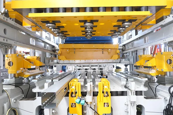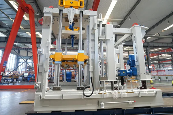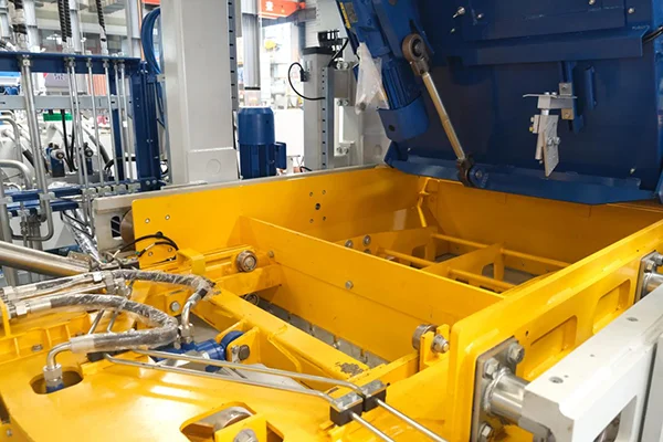 2Automatický systém rýchlej výmeny formy Systém automatickej rýchlej výmeny formy Zenith je založený na koordinovanej prevádzke viacerých zariadení, čo umožňuje inteligentnú, rýchlu a presnú výmenu formy. Akonáhle je forma prepravená vedľa hlavného stroja, je umiestnená na jednotku výmeny formy pomocou zdvíhacieho systému. Systém automaticky dokončí proces výmeny formy bez ručnej manipulácie, polohovania alebo uzamykania.